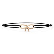 Set in Rose Gold, the Bow Diamond Bracelet is a whimsical yet elegant piece, featuring a charming bow design highlighted with diamonds. This bracelet is the epitome of subtle sophistication, making it an ideal accessory for adding a touch of playful elegance to any outfit. Its delicate design and sparkling diamonds make it a versatile piece for both casual and formal occasions.
