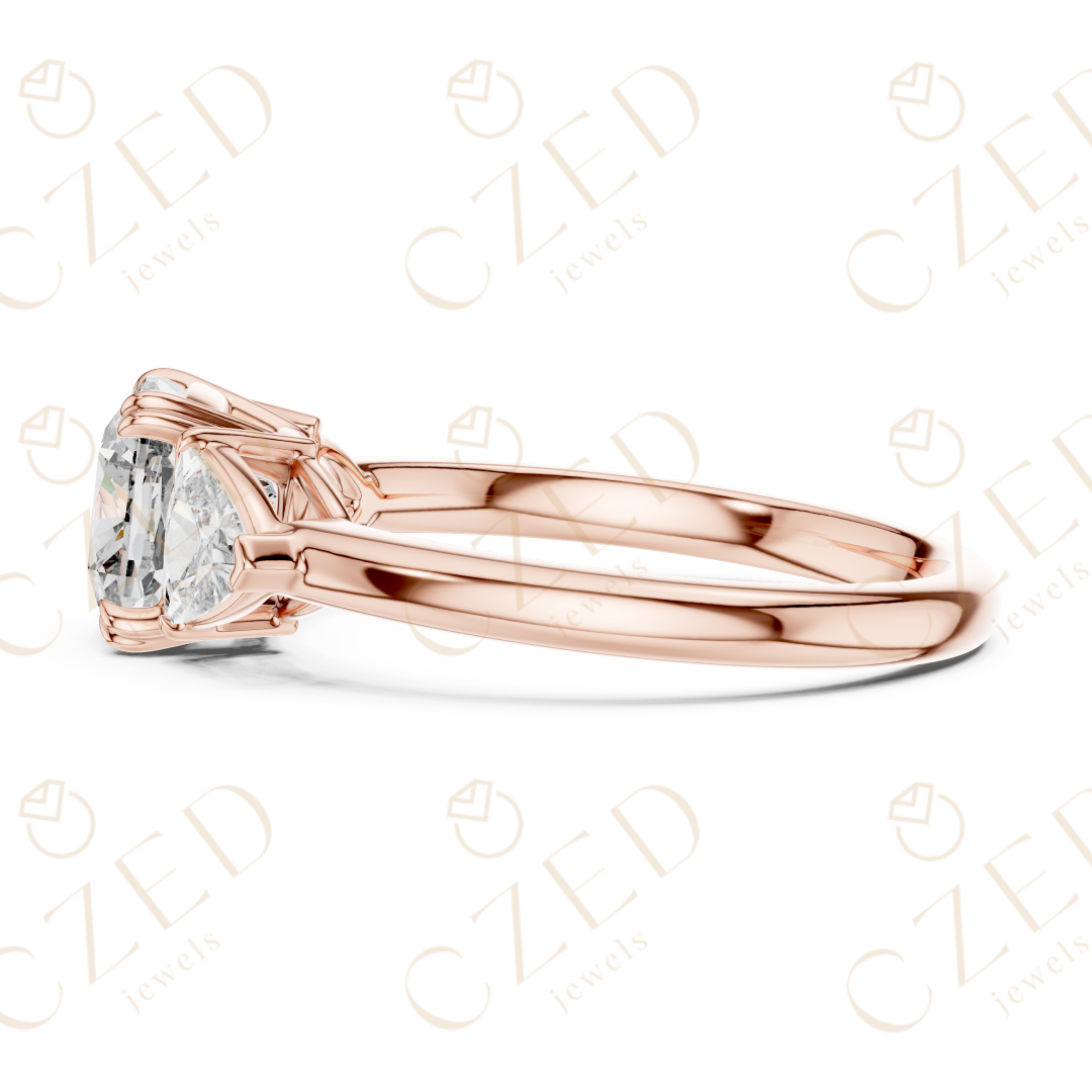 - Side Stones: Two trillion cut diamonds for balanced brilliance