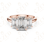 Emerald Cut Three Stone Diamond Ring with Classic Prong Setting