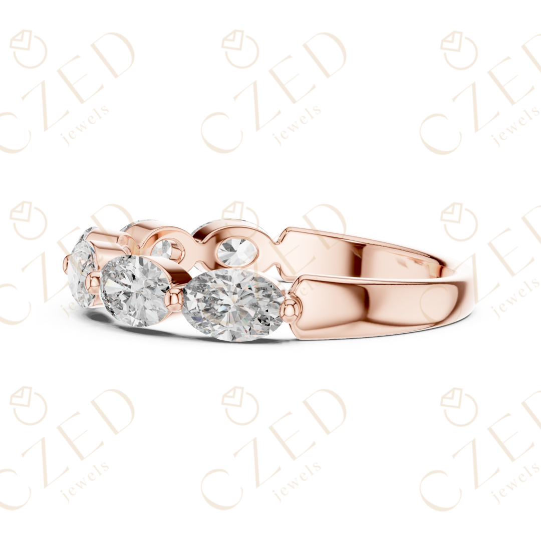 Oval Cut Diamond Half Eternity Band with Prong Set Oval Diamonds