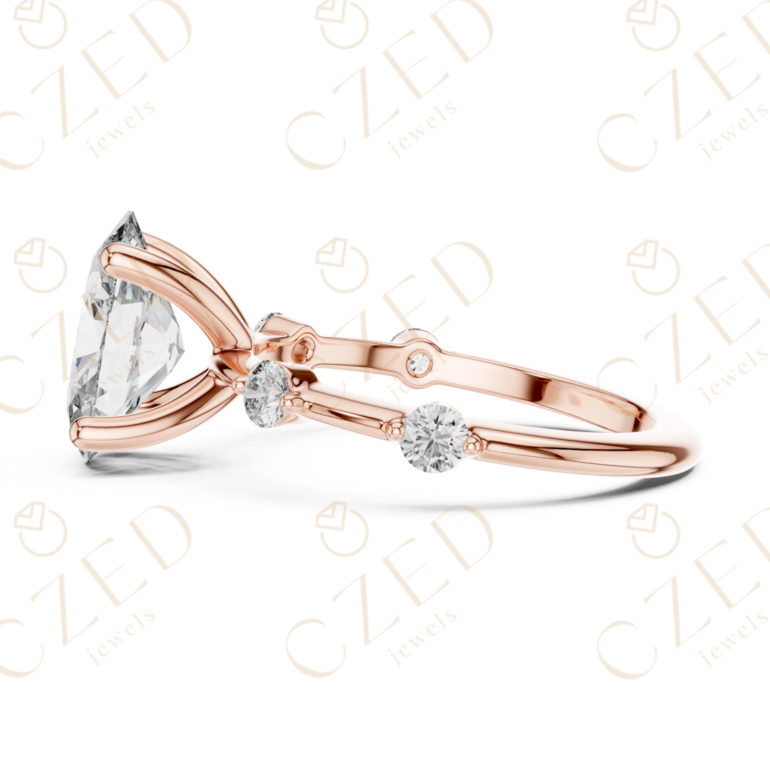Oval Cut Diamond Ring with Round Side Stone Accents