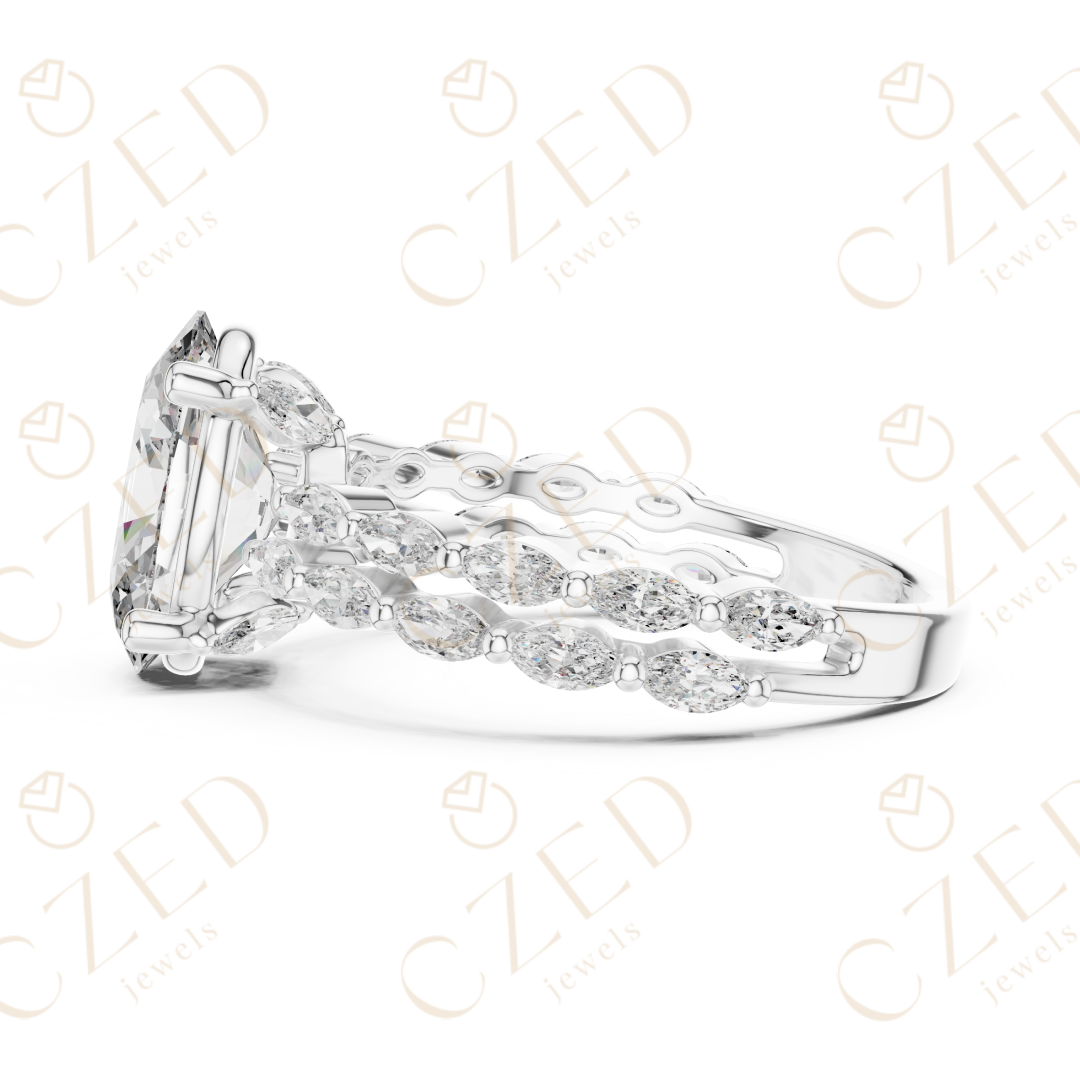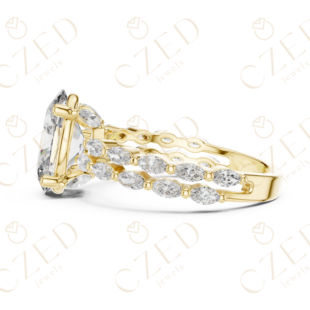 Oval Cut Diamond Solitaire with Marquise Side Accents