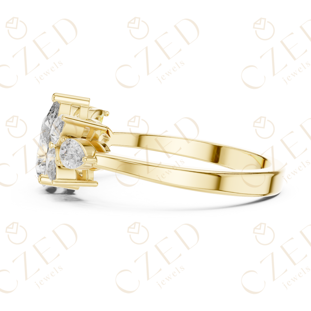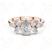 Pear Cut Diamond Floral Side Stone Ring with Elegant Petal-Inspired Brilliance