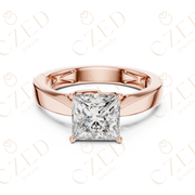 This refined solitaire ring features a striking princess cut diamond held in a classic prong setting atop a clean, modern band. The symmetrical design emphasizes the sharp geometry of the center stone, delivering exceptional visual depth and radiant brilliance from every angle.