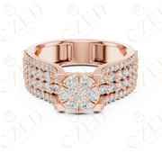 Round Brilliant Diamond Cluster Halo Band with Pavé Shoulders
