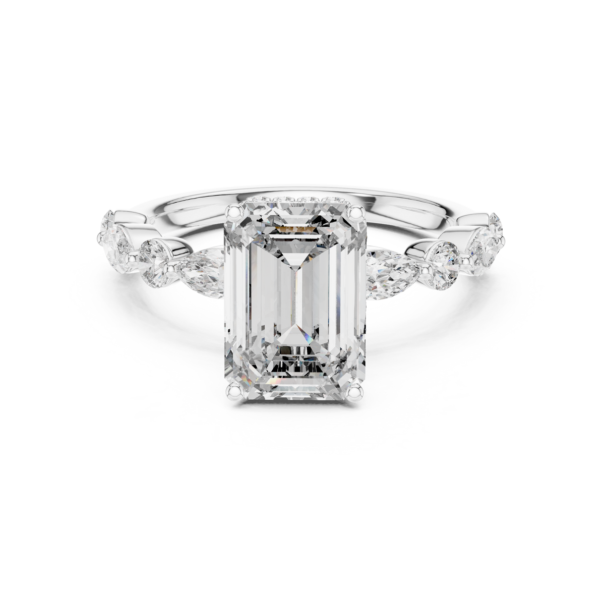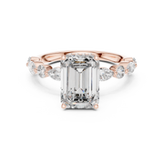 Emerald Cut Diamond Solitaire Ring with Marquise Side Accents