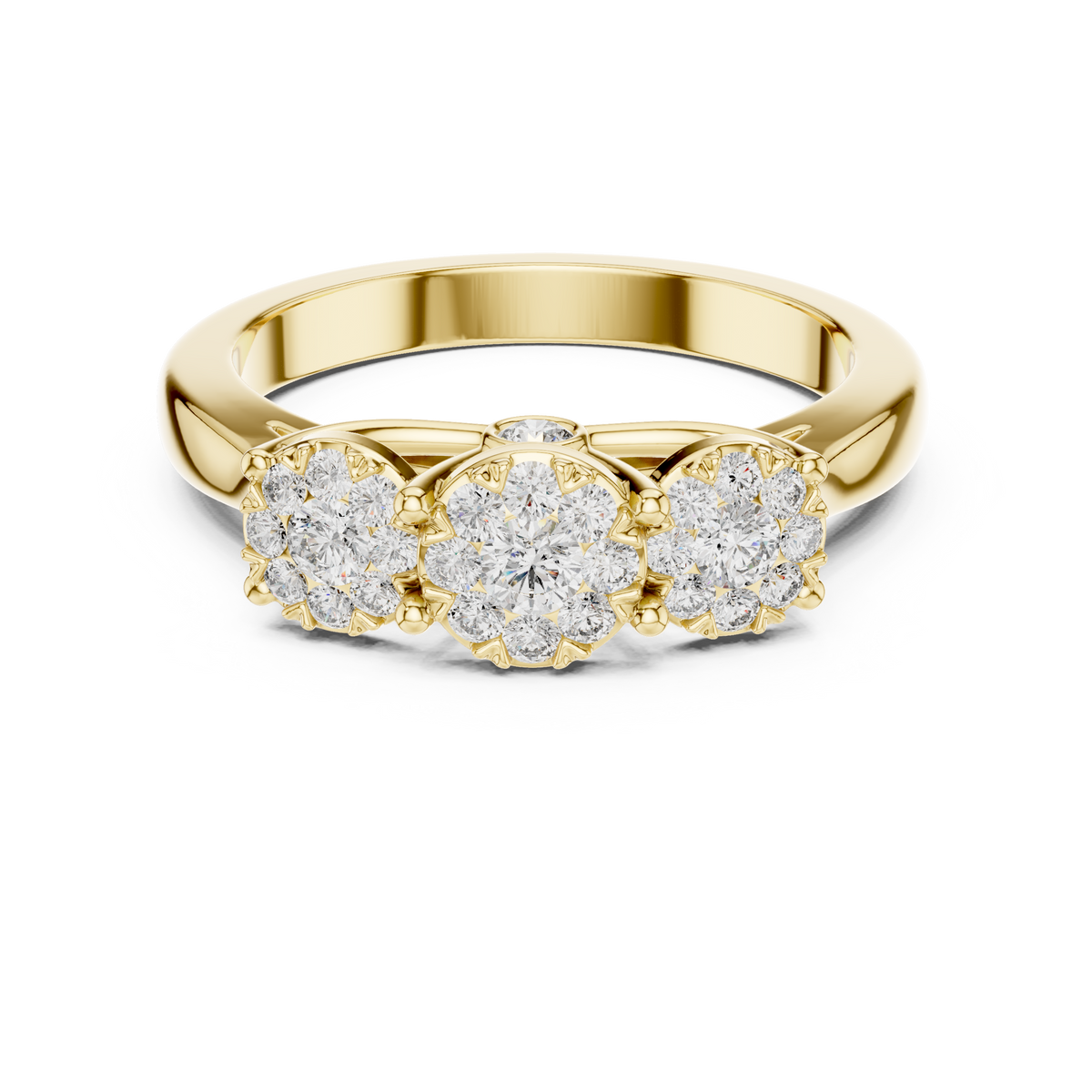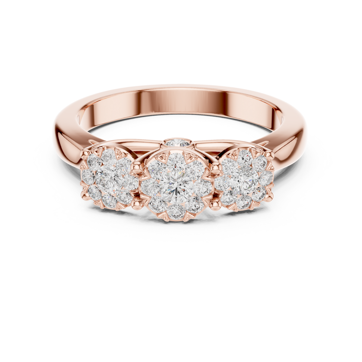 Round Cut Diamond Three Stone Cluster Band Ring