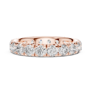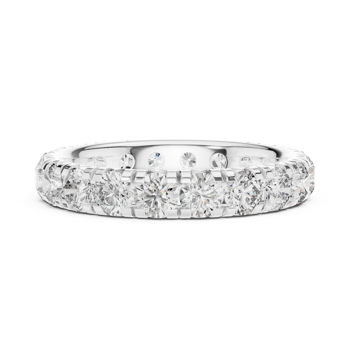 This elegant eternity band showcases a seamless circle of round brilliant cut diamonds, creating a continuous display of fire and brilliance. Each diamond is precisely matched and set in a uniform alignment, forming a perfectly balanced and symmetrical silhouette. The full eternity design enhances light reflection from every angle, delivering exceptional sparkle and refined sophistication.