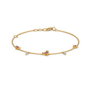 The Adhira Floral Gemstone Bracelet, set in 14 KT Yellow Gold, features a delightful array of gemstones and diamonds, arranged in a charming floral pattern. This bracelet brings a burst of color and sparkle to the wrist, perfect for adding a touch of nature-inspired beauty to any outfit. Ideal for those who love to infuse their look with vibrant, floral elegance.