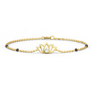 The Ahana Diamond Mangalsutra Bracelet from CzedJewels is a modern take on a traditional symbol. Featuring black beads and diamonds set in yellow gold, this bracelet offers a contemporary way to honor marital vows. Its sleek design is suitable for everyday wear, blending seamlessly with both traditional and modern attire. A beautiful blend of culture and style, this bracelet is ideal for the modern woman.