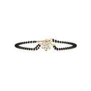Crafted in Yellow Gold, the Devanshi Diamond Mangalsutra Bracelet is a modern tribute to traditional values. It combines the sacred symbol of the mangalsutra with the modern allure of a diamond bracelet. Adorned with carefully selected diamonds, this piece is designed for the contemporary woman who holds her traditions close. Its elegant design makes it suitable for everyday wear, blending seamlessly into the modern lifestyle while keeping cultural essence alive. It’s a beautiful expression of love, commitment, and heritage.