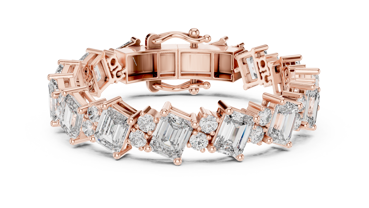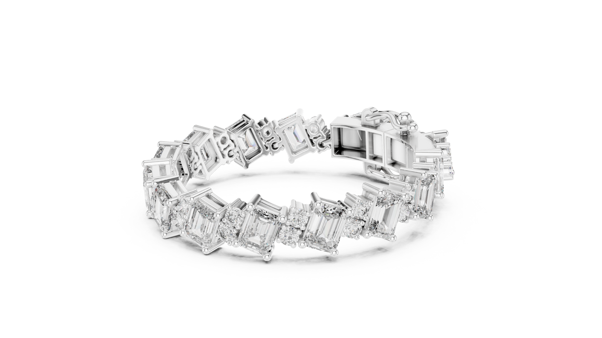 Emerald Cut and Round Diamond Alternating Tennis Chain Bracelet