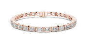 This refined tennis chain bracelet features a seamless row of emerald cut diamonds arranged in a clean, linear silhouette. Each stone is framed in a smooth bezel setting that enhances the crisp geometry of the cut while providing a modern, architectural look. The structured links create fluid movement around the wrist, delivering both flexibility and strength. The result is a balanced design that combines contemporary elegance with timeless brilliance, offering a sleek finish and sophisticated sparkle from every angle.
