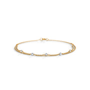 The Lilla Sparkle Spot Diamond Bracelet is a beautiful and elegant piece that showcases diamonds set in gold. Featuring double chains adorned with sparkling diamonds, it offers a modern and timeless look. The diamonds add glamour and luxury, while the gold provides a sophisticated appearance. The double chain design adds interest and dimension, making it a unique and stylish piece that is sure to turn heads.
