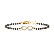 The Obi Infinity Diamond Mangalsutra Bracelet in Gold marries traditional symbolism with contemporary design. Featuring the infinity symbol, it represents eternal love and commitment, while the diamonds add a modern twist. This bracelet is a modern take on the mangalsutra, making it suitable for everyday wear while still honoring tradition. It's a beautiful expression of love that blends seamlessly with the modern woman's wardrobe.