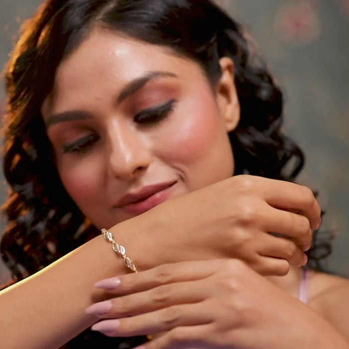 The Oshin Diamond Bracelet, with its mesmerizing array of diamonds set against the backdrop of gleaming yellow gold, radiates warmth and brilliance. This bracelet seamlessly blends traditional charm with modern elegance, making it a versatile accessory for all occasions. Its captivating sparkle and refined design make it a cherished piece for those who appreciate the harmony of classic beauty and contemporary craftsmanship.
