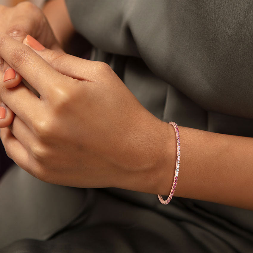 The Rosette Sleek Diamond Bangle by CaratLane is a thing of beauty that you just cannot resist. Crafted with 18KT rose gold, this bangle boasts a sleek design that is both stylish and sophisticated. The bangle is perfect for any occasion, whether it be a formal event or a casual day out. It will undoubtedly add a touch of glamour and sophistication to any outfit. If you're looking for a bangle that exudes elegance and class, look no further than the Rosette Sleek Diamond Bangle.