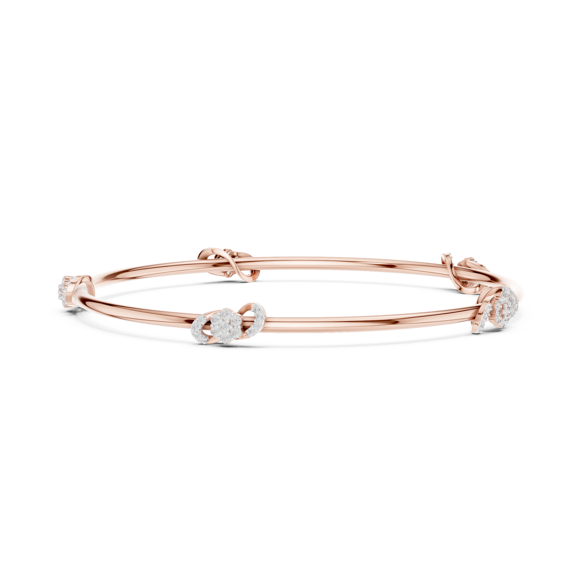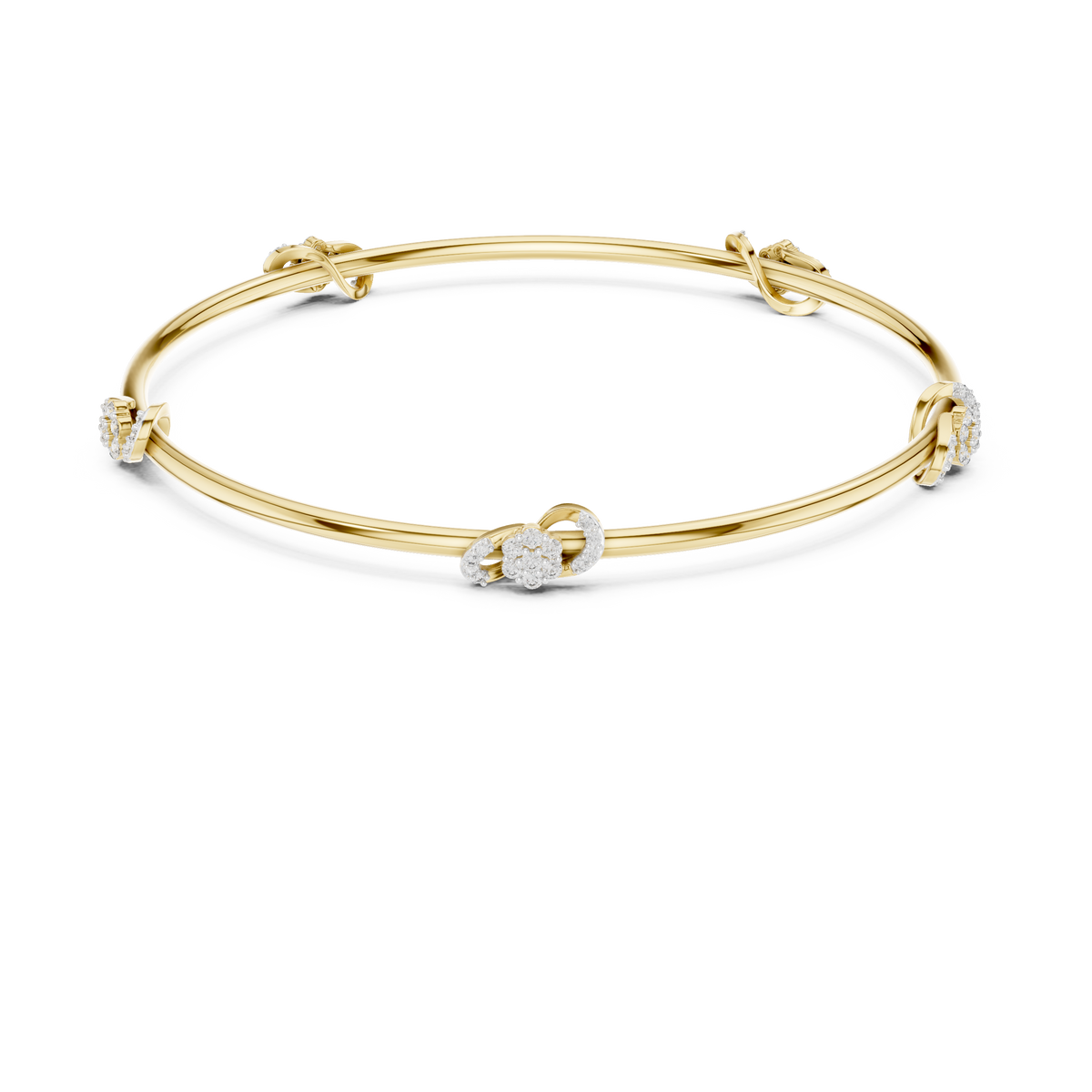 Lightweight, elegant, and effortlessly wearable, this diamond bangle complements both casual and formal looks. The graceful knot details symbolize connection and timeless beauty, while the diamond clusters add refined sparkle. Comfortable for everyday wear and perfect for stacking or solo styling, it makes a meaningful gift for anniversaries, celebrations, or personal milestones.
