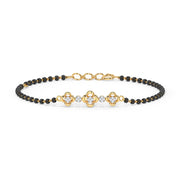 The Saranya Diamond Mangalsutra Bracelet in 14 KT Yellow Gold elegantly redefines traditional values with a contemporary design. Adorned with fine diamonds, it symbolizes love and commitment in a sleek, modern style. Ideal for the modern woman who cherishes cultural significance but prefers minimalist design, this bracelet seamlessly blends tradition with modern aesthetics, making it a versatile piece for daily wear or special occasions.