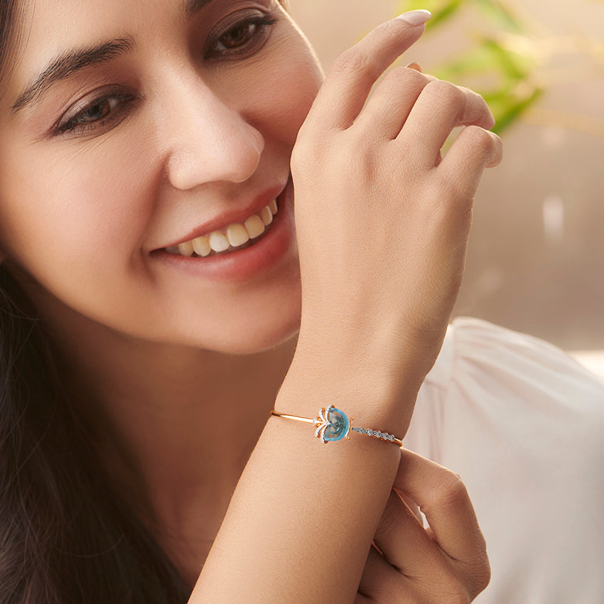 CzedJewels presents the Bloom Diamond Bracelet, a masterpiece of floral design in radiant rose gold, adorned with meticulously placed diamonds that capture the essence of blooming flowers. This bracelet is a celebration of nature's beauty, transformed into a wearable piece of art. It's perfect for those who appreciate the delicate balance between nature and craftsmanship, offering a timeless elegance that compliments any look. This piece is a reflection of CaratLane's commitment to exceptional design and quality.