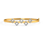 The Suzan Block Diamond Bracelet in yellow gold is a marvel of modern design, featuring a bold geometric pattern accentuated by the brilliance of diamonds. This piece is a fusion of contemporary style and timeless elegance, perfect for those who love to make a statement with their jewellery. It's an ideal accessory for enhancing everyday looks or adding a sophisticated touch to evening wear.