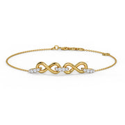 The Twist and Twirl Diamond Bracelet is an embodiment of elegance and eternal beauty, set in 14 KT Yellow Gold. This exquisite piece features a unique infinity design that gracefully twists and twirls around the wrist, symbolizing endless love and infinite possibilities. Adorned with meticulously placed diamonds, it captures the essence of sophistication and timeless charm. Perfect for those seeking a blend of modern design and classic elegance.