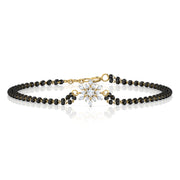 The Vedika Diamond Mangalsutra Bracelet reimagines the conventional mangalsutra with a modern twist. Its sleek design is highlighted by the sparkle of neatly set diamonds, making it an ideal choice for contemporary women. This bracelet merges the symbolism of traditional mangalsutra with the elegance of modern jewellery, creating a piece that's both meaningful and stylish. It's perfect for daily wear or to complement evening attire, reflecting a blend of heritage and modernity.