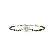 The Zivah Diamond Mangalsutra Bracelet is a magnificent piece set in beautiful gold, featuring diamonds arranged in a floral form and black beads. This sophisticated bracelet allows you to carry your wedding commitments in style, with a bold and elegant look created by the combination of black beads, diamonds, and yellow gold. It's perfect for any occasion, adding a touch of magnificence.