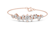 This delicate chain bracelet features a graceful row of round brilliant diamonds arranged in a softly graduated station design. Each stone is secured in classic collet settings, allowing maximum light exposure for exceptional sparkle. The slim chain and evenly spaced diamonds create a fluid, lightweight silhouette that rests comfortably on the wrist while delivering refined brilliance and timeless elegance.
