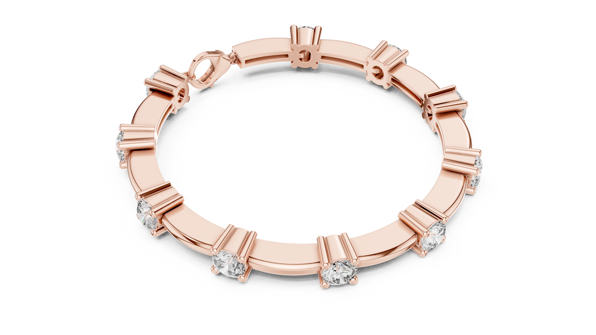 Round Brilliant Diamond Station Link Chain Bracelet in Classic Collet Setting