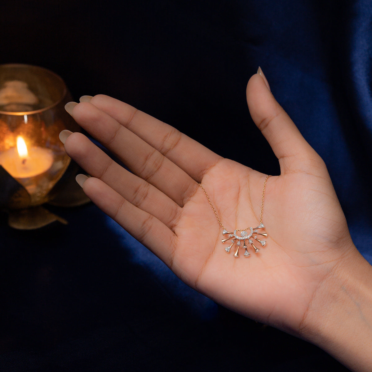 Radiate timeless beauty with the Elinor Diamond Necklace by CzedJewels. This stunning necklace showcases a dazzling display of diamonds in a sophisticated and contemporary design. The pendant features a cluster of diamonds meticulously set to create a mesmerizing sparkle. The diamonds catch the light, creating a captivating play of brilliance. The pendant hangs from a slender gold chain, adding a touch of elegance to the overall design.