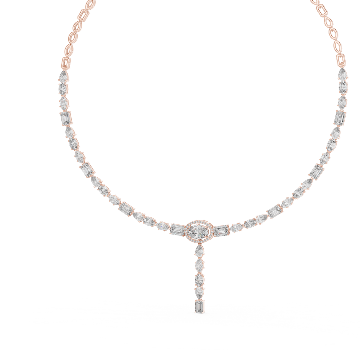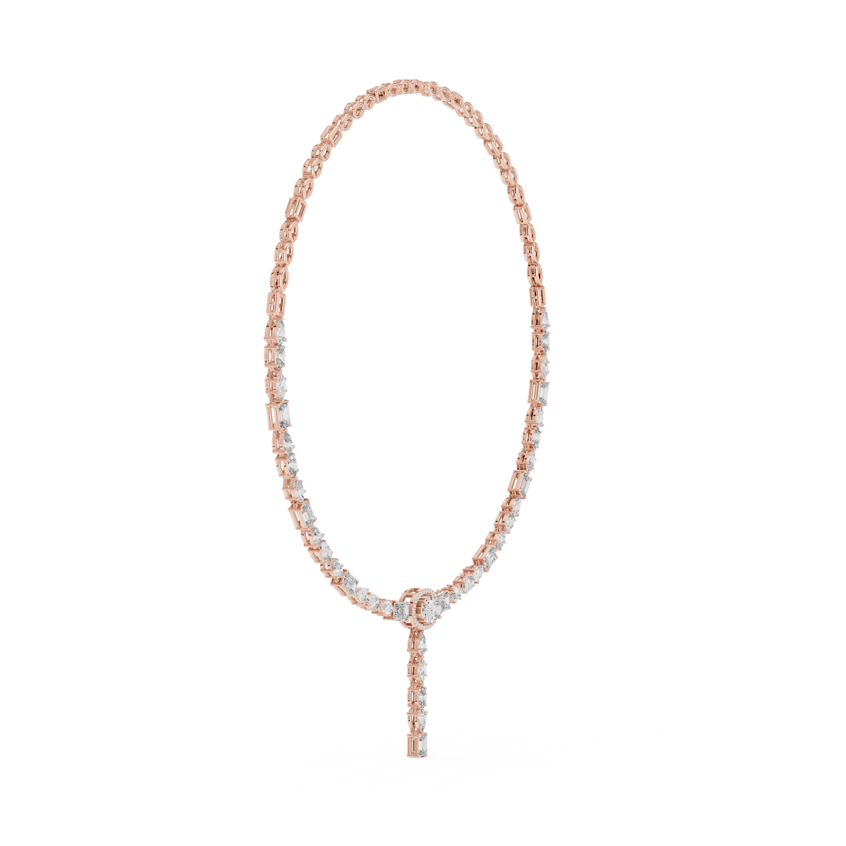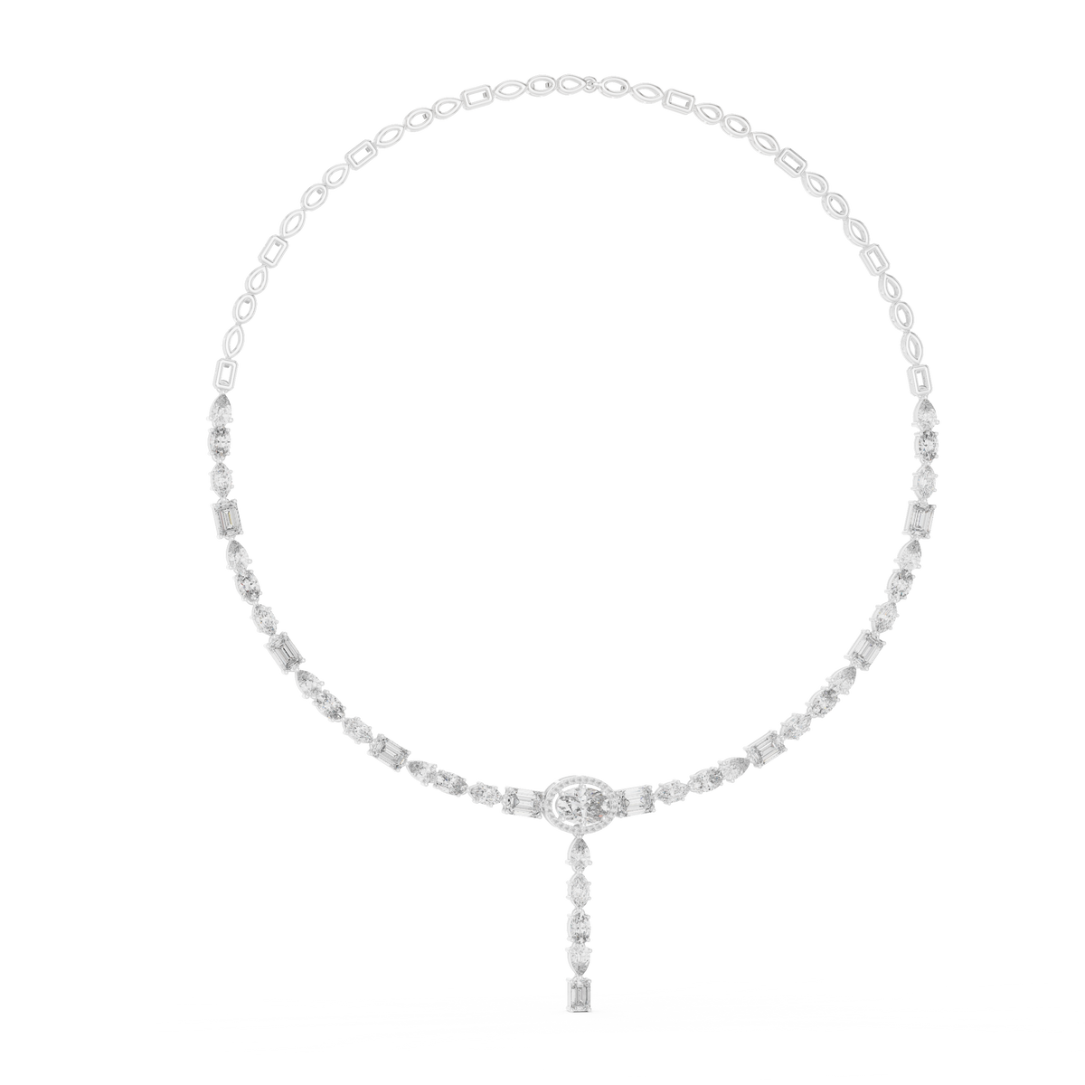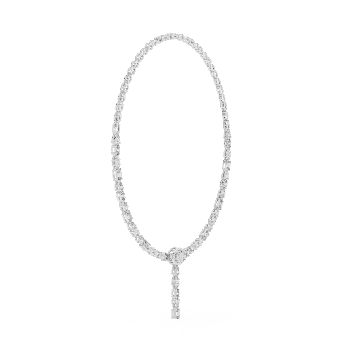 This necklace offers a timeless balance between delicacy and statement luxury. The mixed cuts create multidimensional sparkle, while the graceful drop pendant enhances neckline elegance. Designed for comfortable daily wear yet radiant enough for special occasions, it’s a perfect expression of modern sophistication and refined personal style. Ideal for weddings, anniversaries, or meaningful gifts.