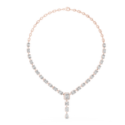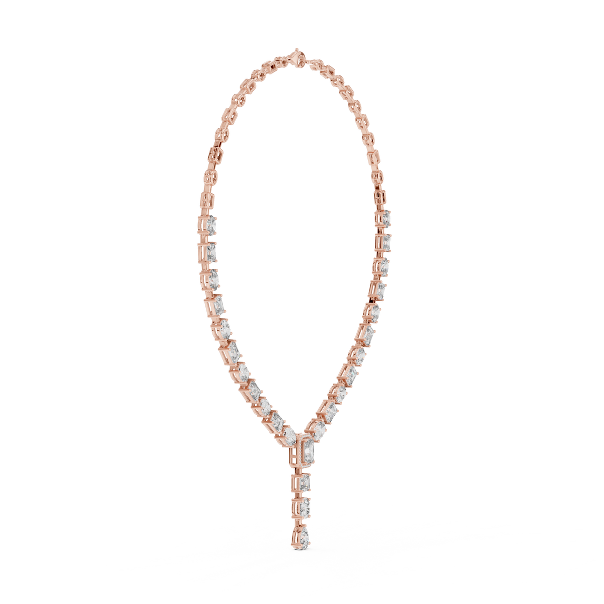 Mixed Cut Diamond Link Chain Necklace with Emerald Cut Drop Pendant - 10K / VS