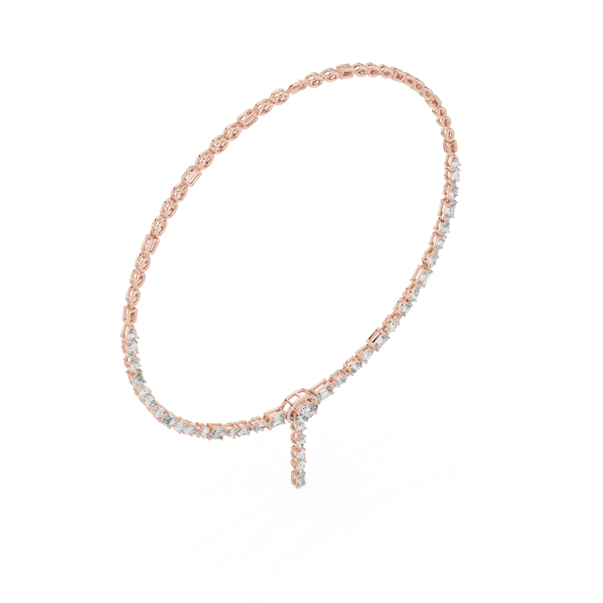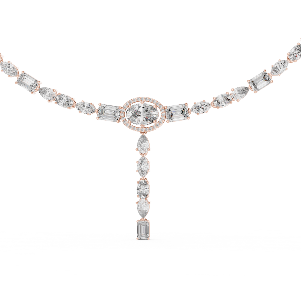 Multi Shape Diamond Halo Drop Riviera Pendant Necklace