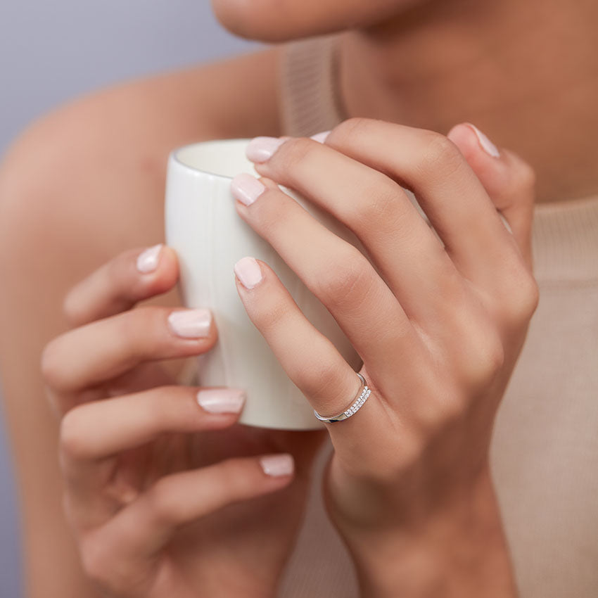 The Branca Ray Diamond Ring is a symbol of understated elegance and modern simplicity. This delicate ring features a slender band adorned with a row of finely set, dazzling diamonds. The minimalist design allows the brilliance of the diamonds to shine, making it a perfect piece for everyday wear or stacking with other rings. Crafted in high-quality metal, this ring combines sleek sophistication with timeless beauty, making it an exquisite addition to any jewellery collection.