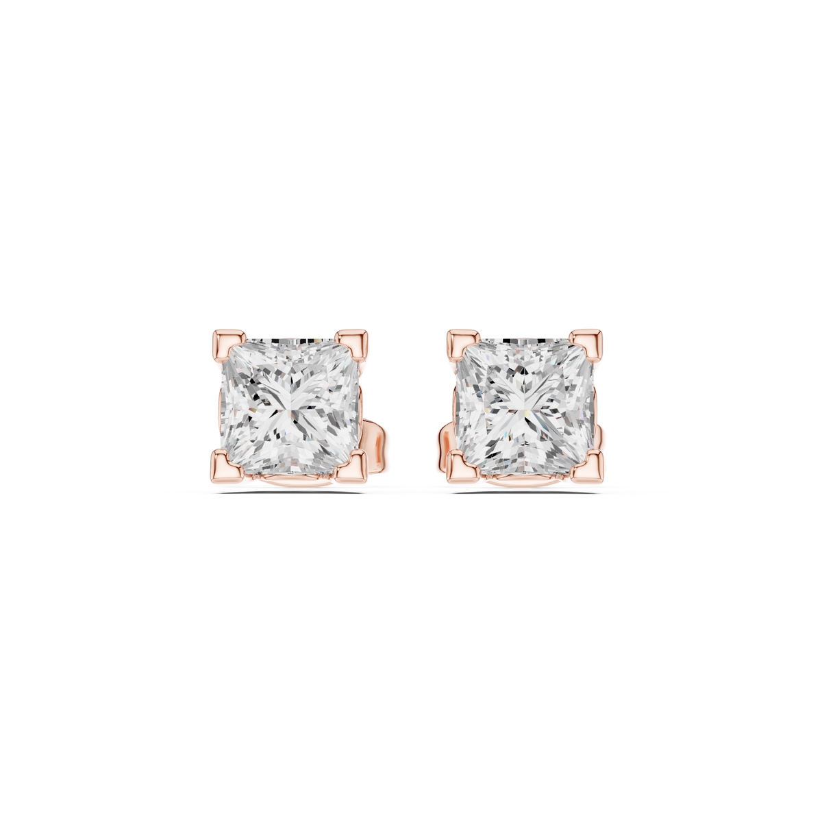 These refined diamond stud earrings feature brilliant princess cut diamonds displayed in a classic four-prong setting. The square geometry of the princess cut offers a crisp and modern appearance while delivering exceptional brilliance and light reflection.