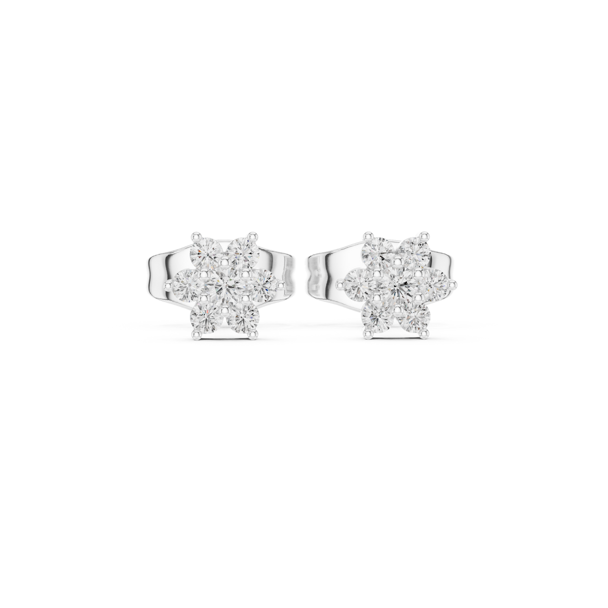 Round Diamond Floral Cluster Stud Earrings with Classic Bloom Design
