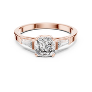 Cushion Cut Diamond Three Stone Ring with Baguette Side Diamonds