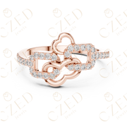 Round Cut Diamond Chain Heart Link Band Ring - 10K / VS