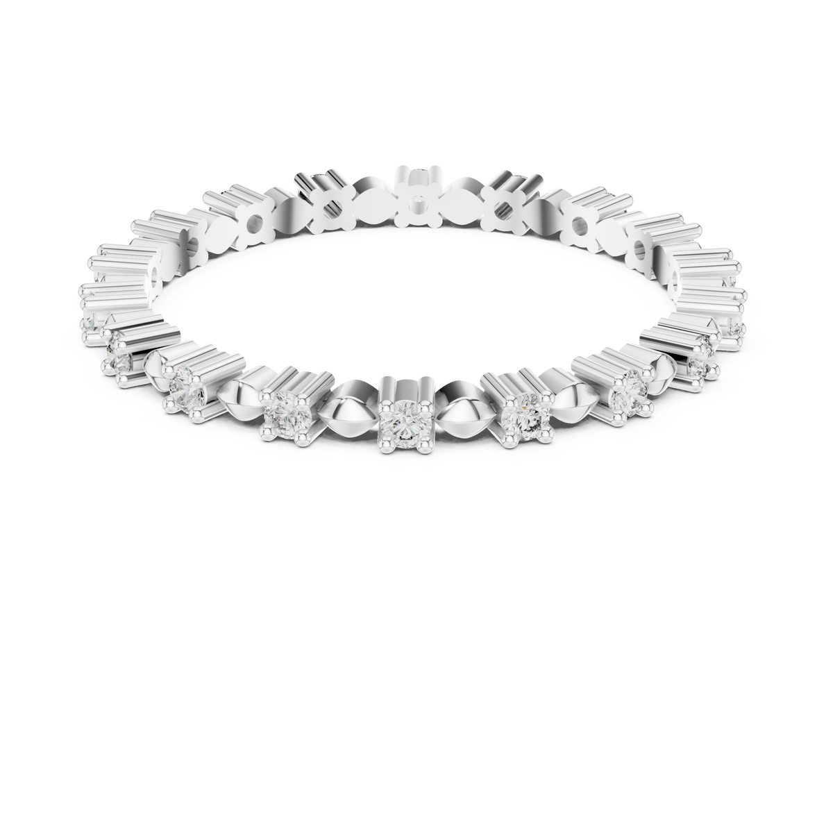 - Center stone: Not applicable – full eternity design
