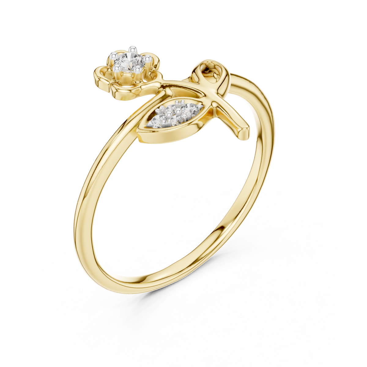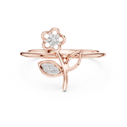 Round Cut Diamond Floral Solitaire Ring with Leaf Accent