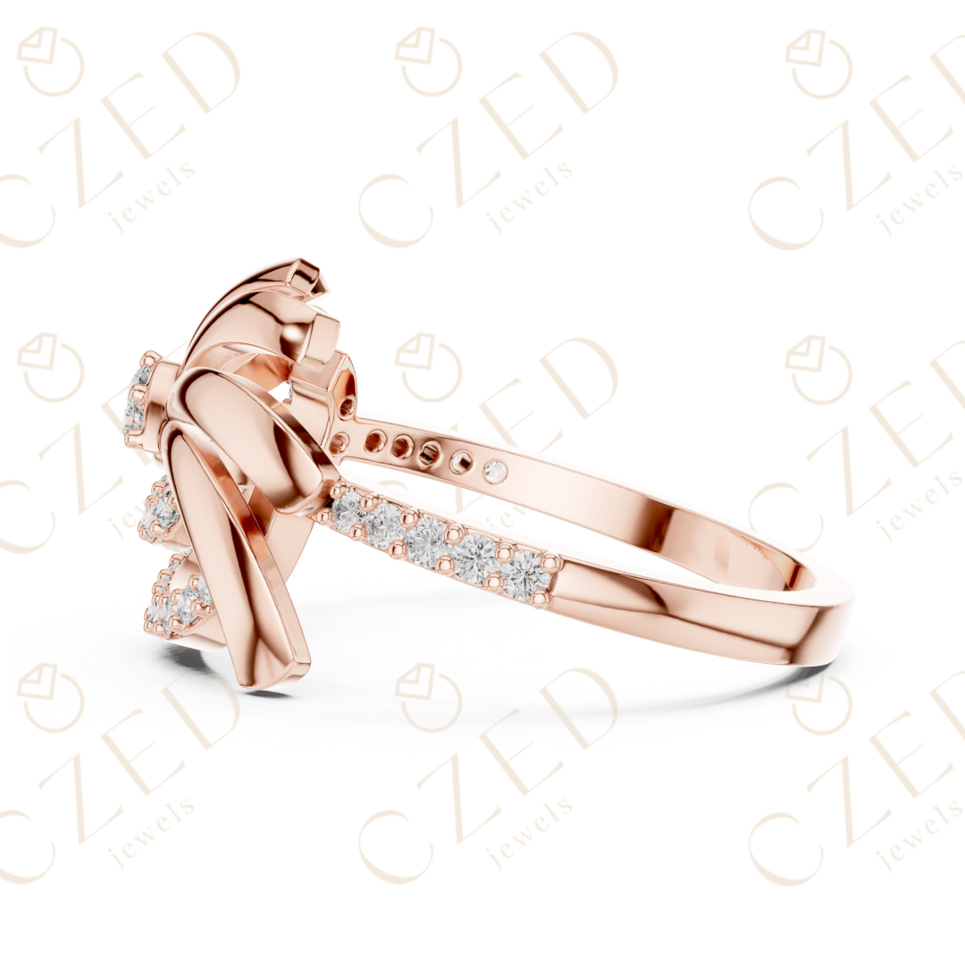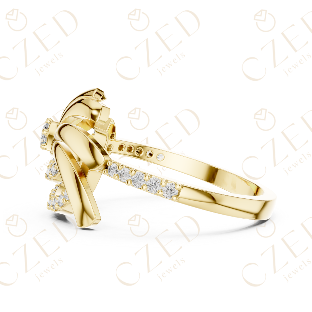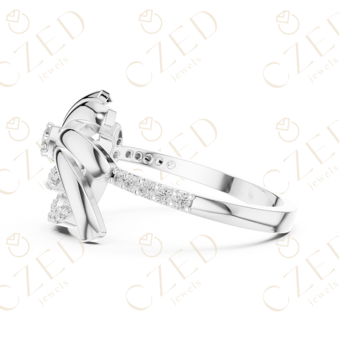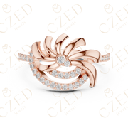 Round Cut Diamond Floral Twist Halo Ring with Pavé Accents