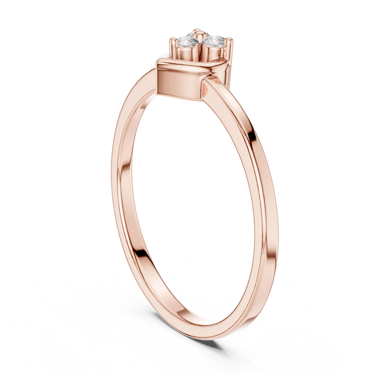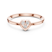 This elegant diamond ring features a delicate heart shaped cluster formed by three round cut diamonds. The symmetrical three stone arrangement creates soft visual depth, while the refined collet setting enhances brilliance by allowing light to pass freely through each stone. A slender, polished band completes the design with timeless simplicity and romantic charm.
