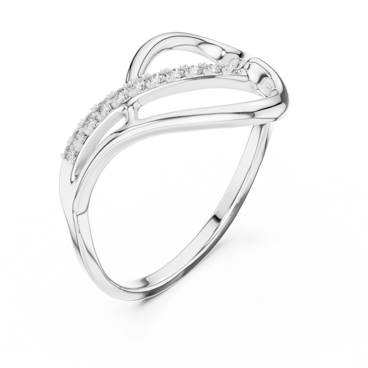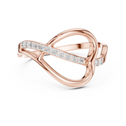 This refined diamond ring showcases a graceful infinity-inspired twist design accented with round brilliant cut diamonds. Pavé-set stones flow seamlessly along the curved band, creating balanced symmetry, visual depth, and a soft, continuous sparkle.