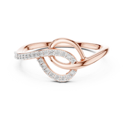 This refined diamond ring showcases an interlaced infinity twist design accented with rows of round cut diamonds. Flowing curves overlap with graceful symmetry, creating visual depth and a continuous sense of motion. Micro prong–set diamonds enhance brilliance while the sculpted form delivers a modern yet timeless presence.