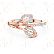 This elegant diamond ring showcases a flowing interlocking infinity twist design adorned with round brilliant cut diamonds. The sculpted crossover form creates graceful symmetry, while precisely set diamonds add visual depth, refined sparkle, and a continuous sense of movement.