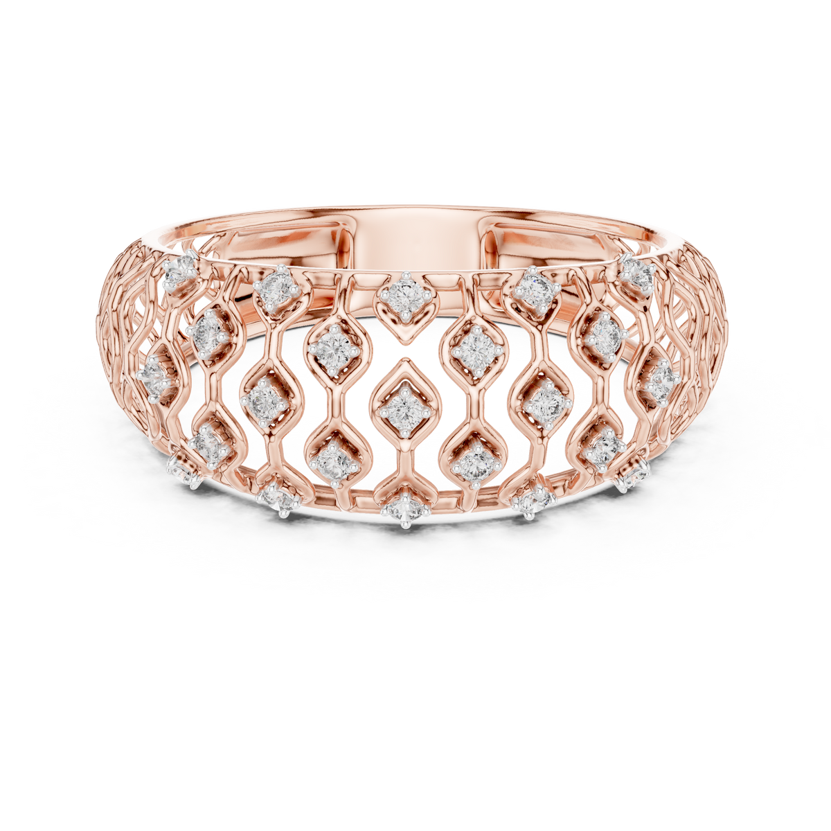 Designed for those who appreciate bold elegance, this diamond lattice band offers architectural beauty with timeless appeal. Crafted with lab-grown diamonds, it reflects an ethical and responsible choice while delivering exceptional sparkle. Its wide-band structure provides confident wearability, making it ideal for weddings, anniversaries, or statement everyday styling.