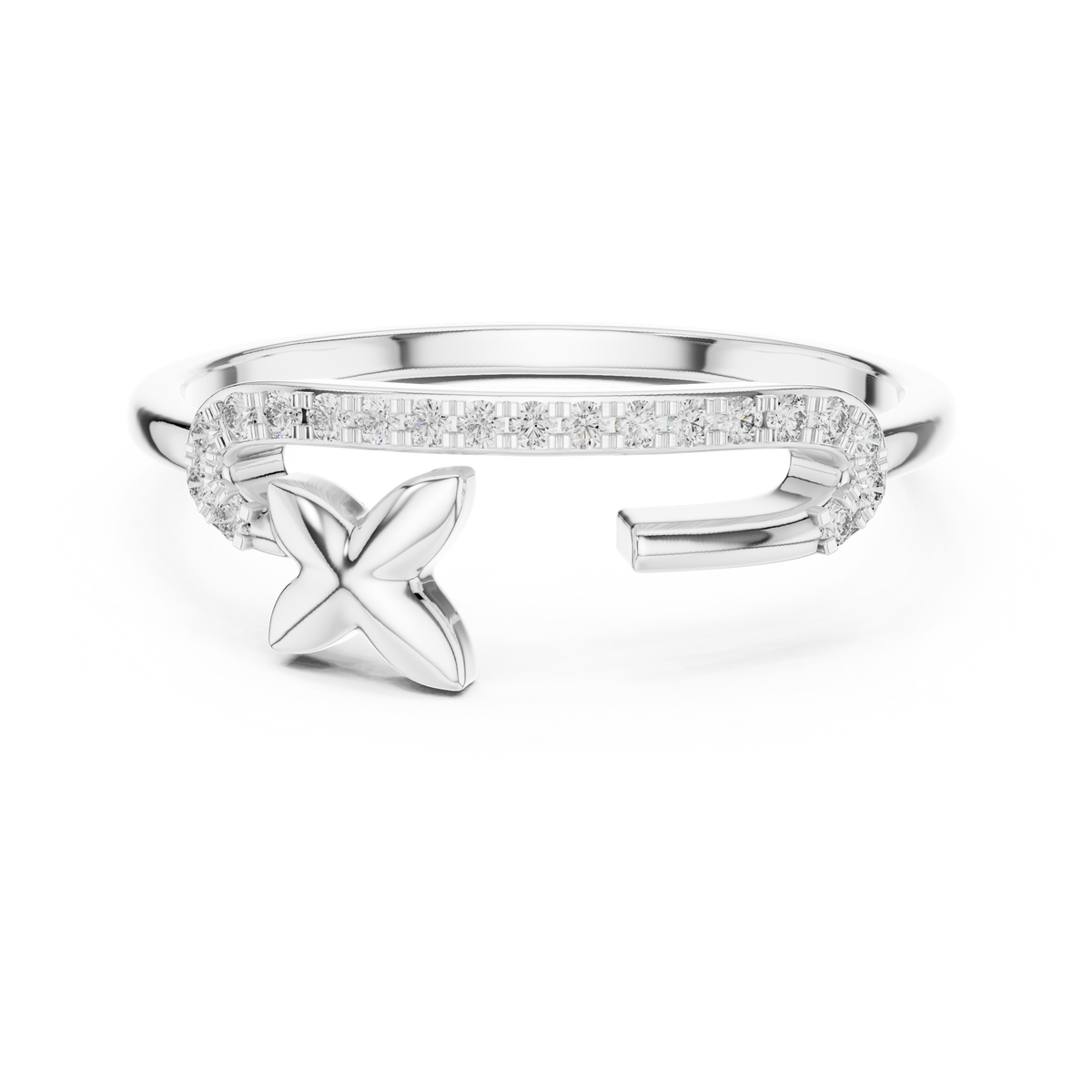 Round Cut Diamond Open Cuff Ring with Star Charm