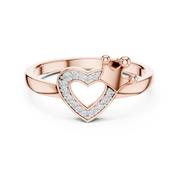 This elegant diamond ring showcases a romantic heart-shaped halo design accented with a refined crown motif. Round brilliant cut diamonds are pavé set along the heart outline, creating luminous depth and balanced symmetry. The open heart center enhances visual lightness while delivering graceful brilliance from every angle.