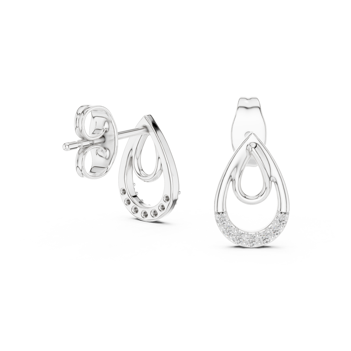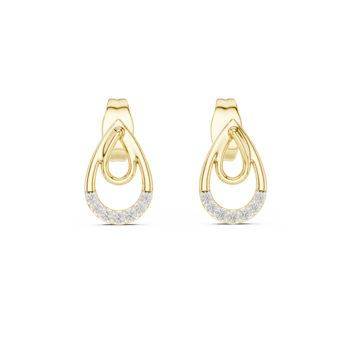 Diamond Pavé Teardrop Open Hoop Drop Earrings with Round Brilliant Accents